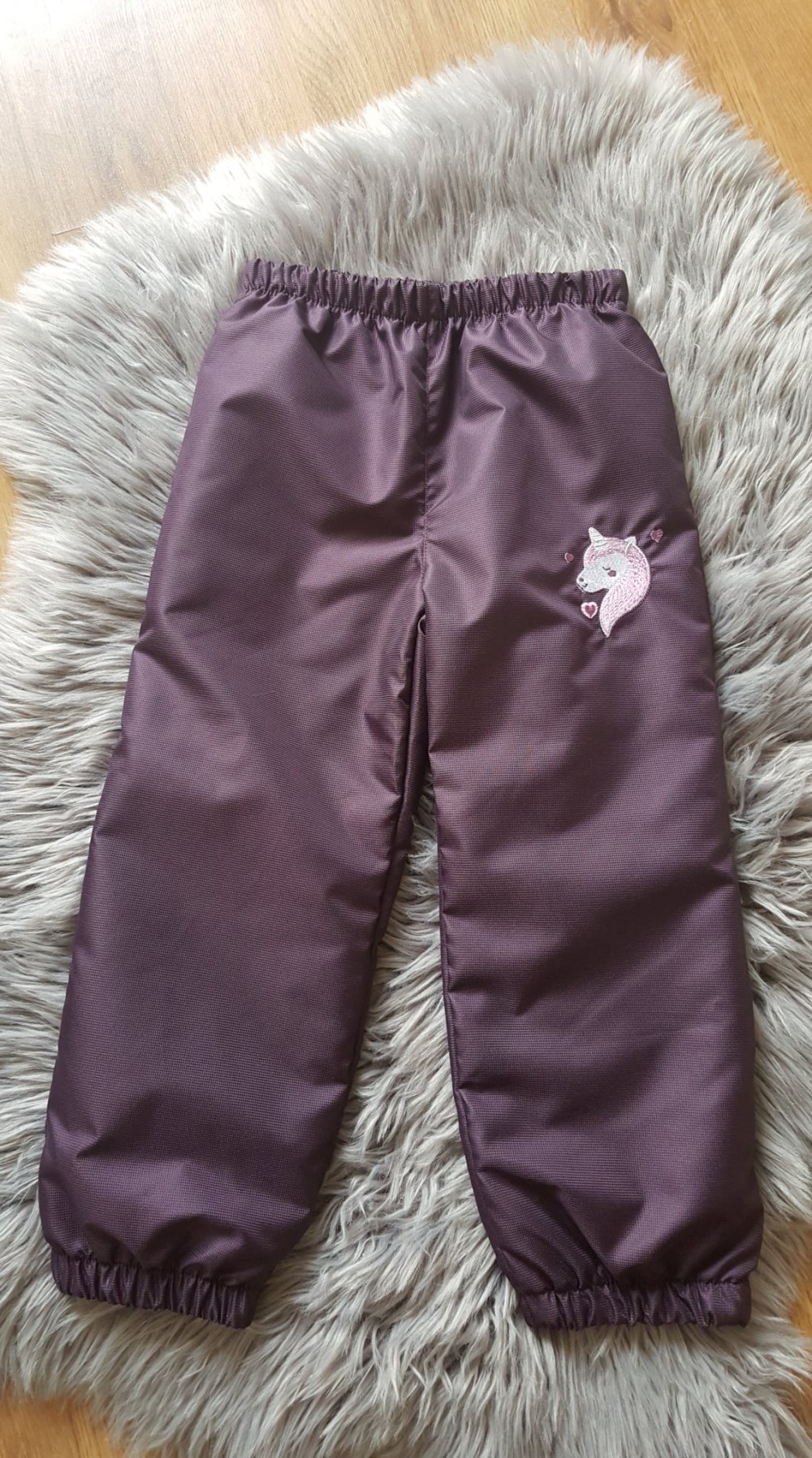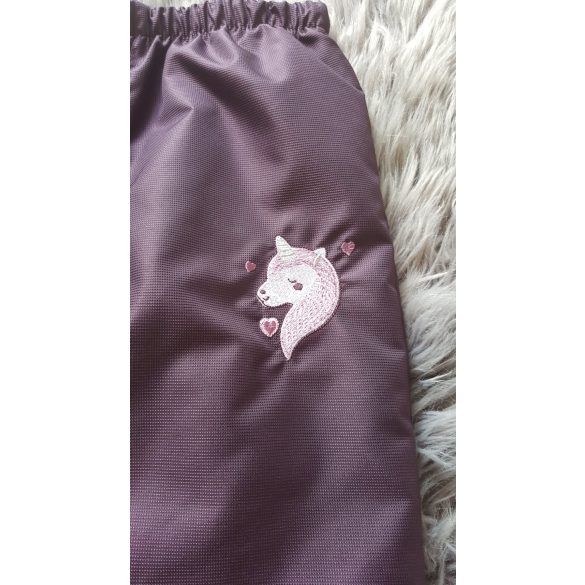 116-OS PAMUT BÉLELT VÍZLEPERGETŐ NADRÁG PADLIZSÁN ALAPON UNIKORNIS HÍMZETT