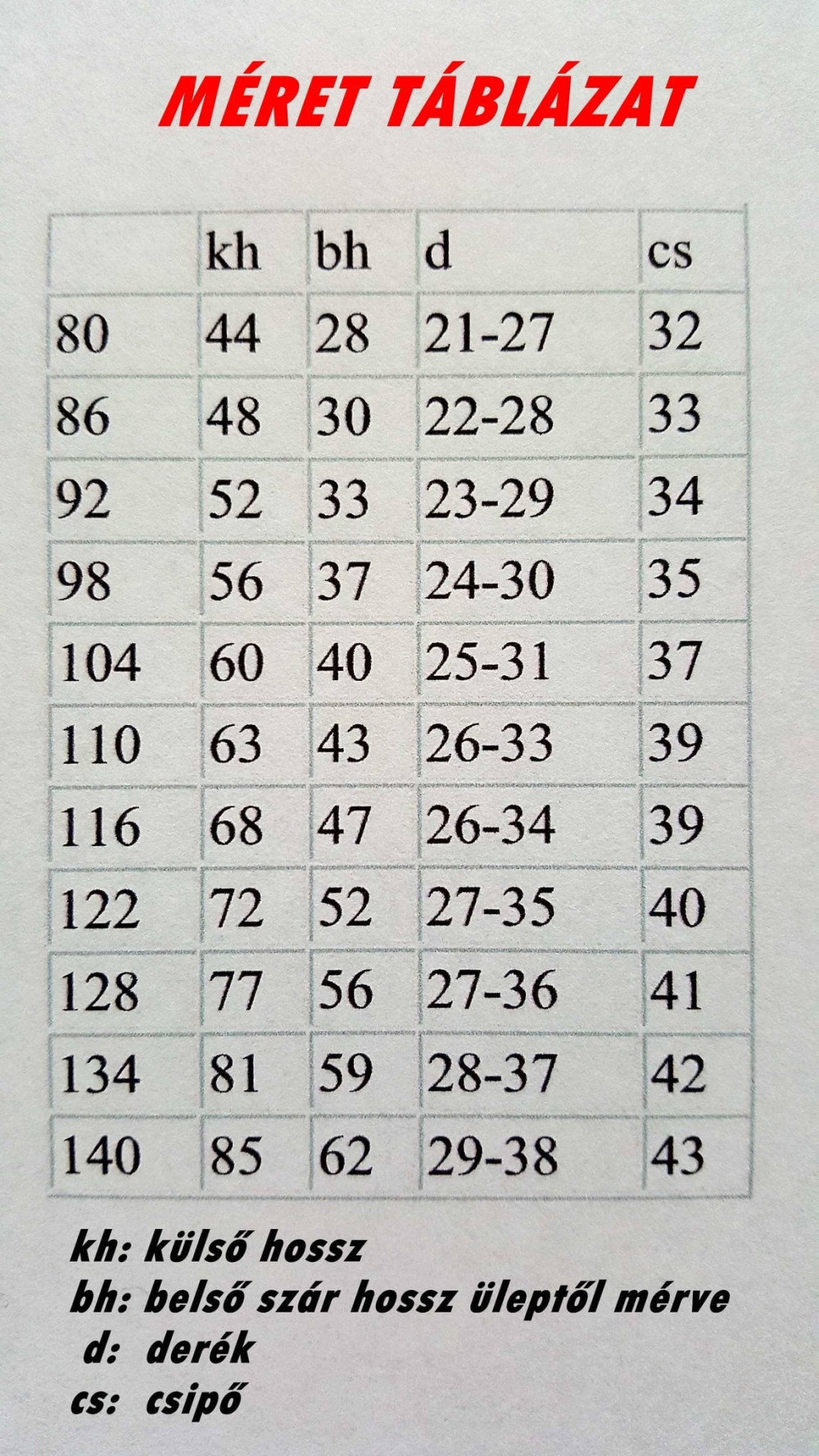 Kérlek minden esetben nézd a méretezést, mert nadrágjaink hosszú szabásúak, így akár több évet is hordhatóak!